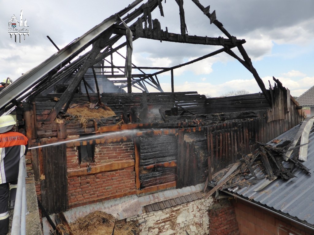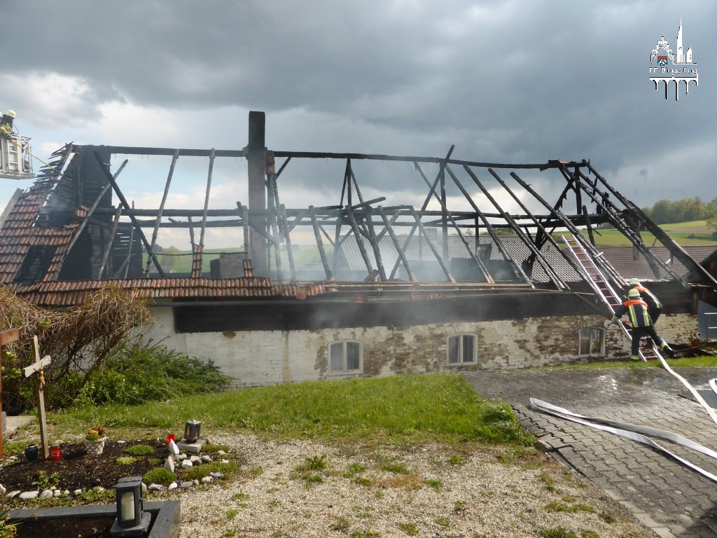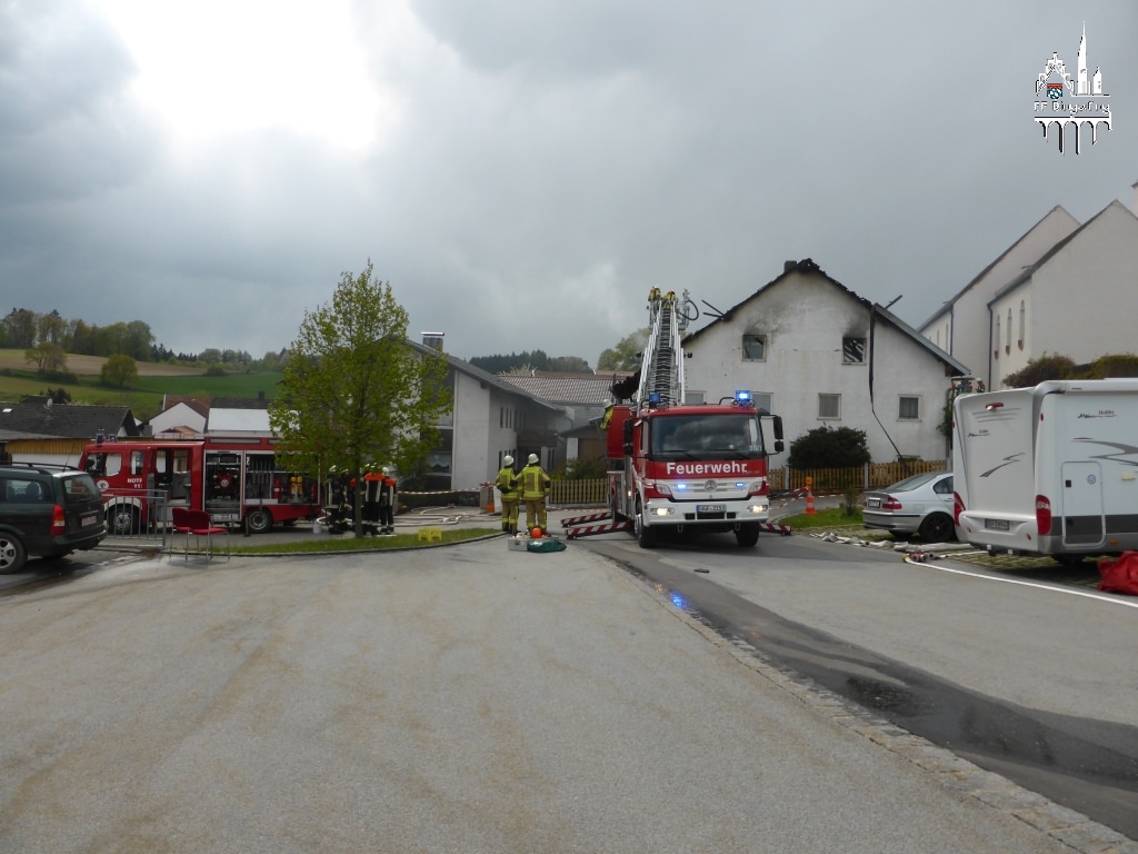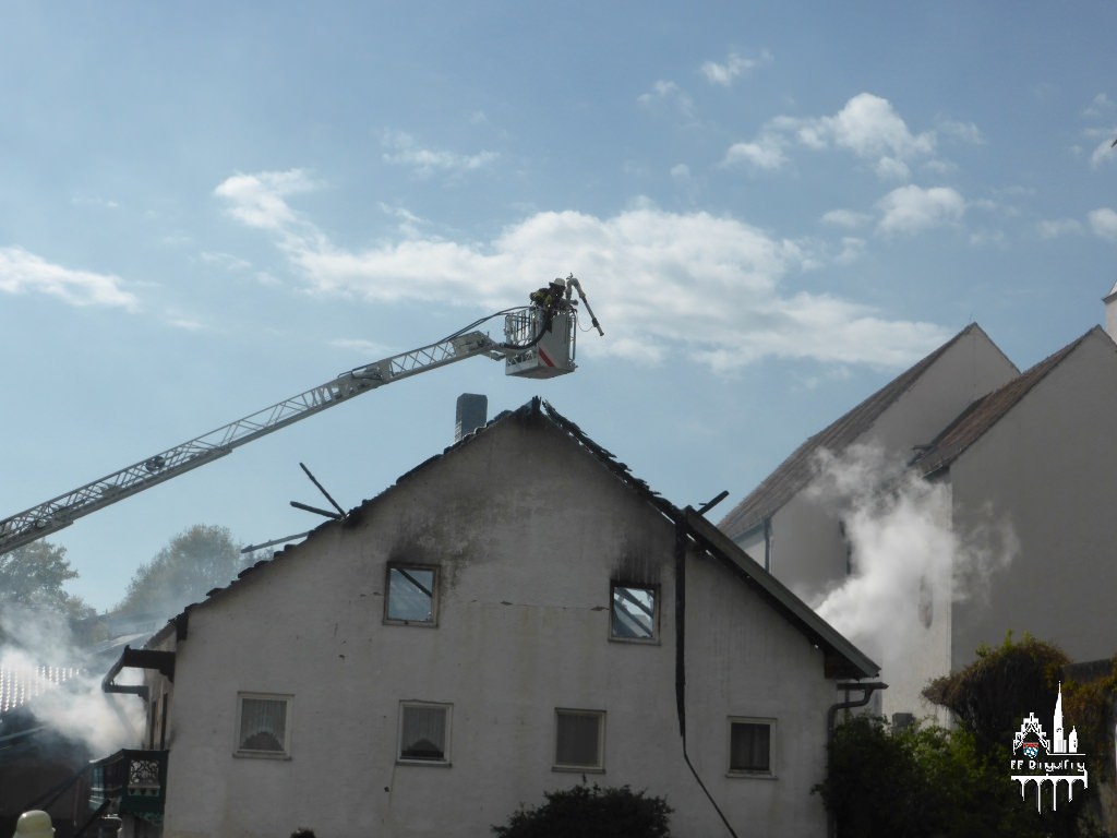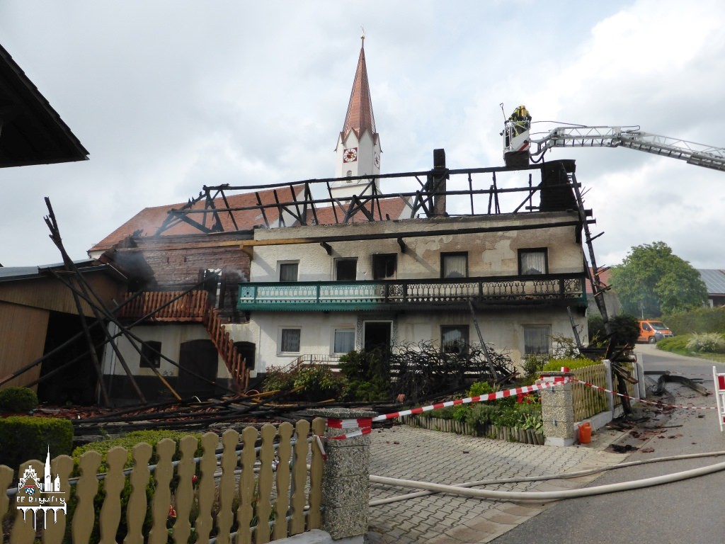 Die Feuerwehren Höfen und Lengthal wurden von der Integrierten Leitstelle Landshut zu einem Heckenbrand mit Gefahr der Ausbreitung auf das Wohnhaus nach Lengthal alarmiert. Beim Eintreffen der Ortswehr Lengthal griff das Feuer bereits auf das Wohnhaus über und setzte den Dachstuhl in Brand. Aufgrund der geänderten Lage wurden die Feuerwehren Dingolfing, Dornwang und Moosthenning nachalarmiert. Die Feuerwehr Dingolfing setzte zur Brandbekämpfung über die DLK ein Wenderohr sowie ein Schwerschaumrohr ein. Anschließend wurden einige Dachbalken vom zerstörten Dachstuhl entfernt und der Dachbereich, hauptsächlich wegen des noch immer rauchenden und glimmenden Heus, mit Schaum überdeckt. Die Feuerwehren Dornwang, Moosthenning und Lengthal wechselten sich bis in den nächsten Tag bei der Brandwache ab.