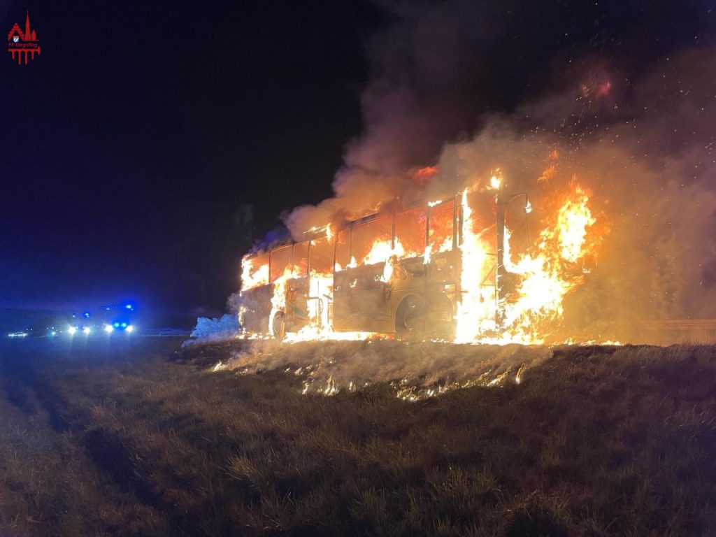 Alarmierung zu einem brennenden Bus auf die A92 in Fahrtrichtung München zwischen den Anschlussstellen Dingolfing-Ost und Dingolfin...