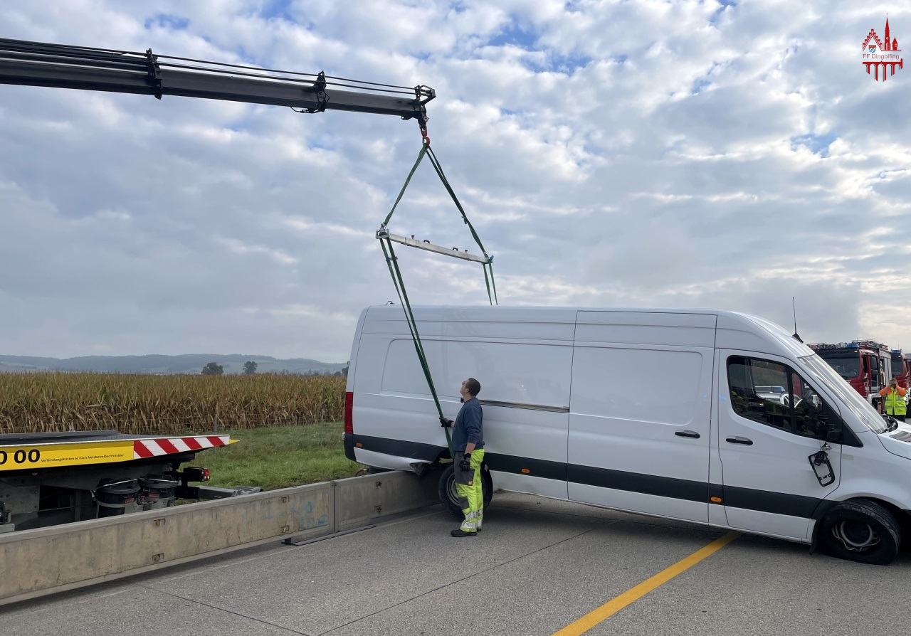 Alarmierung der Feuerwehr Dingolfing mit dem Rüstzug und VSA zusammen mit der Feuerwehr Höfen zu einem eCall ohne Spracherwiderung auf die A92 zwischen den Anschlussstellen Dingolfing-West und Wörth in Fahrtrichtung München. Noch während der Anfahrt wurde vom Einsatzleiter der Feuerwehr Höfen gemeldet, dass sich der Unfall im Baustellenbereich befinde und aufgrund des Rückstaus kein Durchkommen zur Einsatzstelle möglich sei und somit eine Anfahrt über die Gegenrichtung erforderlich ist. Daraufhin entschied der Zugführer der Feuerwehr Dingolfing, dass die Kräfte aus Dingolfing über die St2074 die Noteinfahrt Loichingermoos bzw. das TroLF mit VSA die Noteinfahrt Rothaus anfahren und dann in Fahrtrichtung Deggendorf auf die Autobahn zur Unfallstelle auffahren. An der Einsatzstelle wurde ein Sprinter vorgefunden, der quer über die beiden Fahrspuren stand und mit der Hinterachse auf die Betonleitwände aufgefädelt hatte. Personen waren glücklicherweise weder eingeklemmt, noch verletzt. Die Feuerwehr Höfen übernahm die Sicherung des Unfallfahrzeugs, der Rüstzug aus Dingolfing, abgesichert durch den VSA, blieb auf der Gegenspur auf Bereitstellung. Nachdem das eingetroffene Abschleppfahrzeug mit Kran das Unfallfahrzeug bergen konnte und keine Einsatzmittel von der Feuerwehr mehr benötigt wurden, kehrten die Kräfte der Feuerwehr Dingolfing zur Feuerwache zurück. Die Feuerwehr Höfen verblieb bis zum Abtransport des Fahrzeugs an der Einsatzstelle und reinigte diese abschließend.