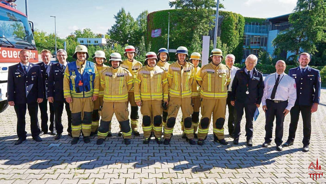 Zwei Gruppen absolvierten am Samstag die Leistungsprüfung „Die Gruppe im Löscheinsatz“. Geleitet von den Gruppenführern Anna Gillig und Florian Hilpert hatten sich 15 Aktive und zwei Feuerwehranwärter auf die Prüfung vorbereitet. Zur Abnahme fanden sich am Vormittag Kreisbrandinspektor Helmut Huber und die Kreisbrandmeister Christian Schmidt und Stefan Fischer an der Feuerwache ein, um den ordnungsgemäßen Ablauf der Prüfung zu überwachen und zu bewerten. Bei der Leistungsprüfung wird das Vorgehen einer Löschgruppe, bestehend aus neun Einsatzkräften, im Brandeinsatz geprüft. Hierzu gilt es, innerhalb eines vorgegebenen Zeitlimits einen Löschangriff mit drei Strahlrohren vorzunehmen. Ziel ist aber nicht unbedingt eine Rekordzeit, sondern eine zügige und ordnungsgemäße Teamleistung. Die Arbeit der Feuerwehr muss zwar schnell, aber auch geordnet und fehlerfrei ablaufen. Neben der Einsatzübung wurden bei der Leistungsprüfung auch der Aufbau einer Saugleitung zur Wasserentnahme aus offenem Gewässer, das Vorführen verschiedener Knoten und Stiche sowie – je nach abzulegender Stufe – unterschiedliche Zusatzaufgaben, wie zum Beispiel Gerätekunde oder das Beantworten von Testfragen, von den Teilnehmern gefordert. Die gestellten Aufgaben wurden von beiden Gruppen gekonnt und zur vollsten Zufriedenheit der Schiedsrichter mit einem sehr guten Ergebnis gemeistert. Bei dem anschließenden gemeinsamen Mittagessen mit Verleihung der Leistungsabzeichen durch Kreisbrandinspektor Helmut Huber wurde dann auch nicht mit Lob gespart. Kommandant Stefan Klein und seine beiden Stellvertreter Michael Wagner und Thomas Kerscher bedankten sich für das Engagement der Teilnehmer und freuten sich außerdem besonders über die fünf Teilnehmer, die ihre erste Leistungsprüfung ablegten.