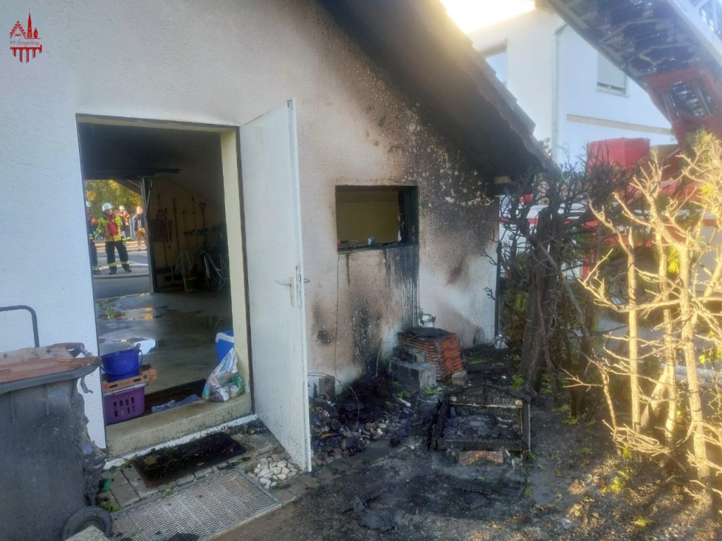 Bei Gartenarbeiten geriet eine Hecke in Brand und Griff auf die angrenzende Garage und das Wohnhaus über. Durch den schnellen Lösc...
