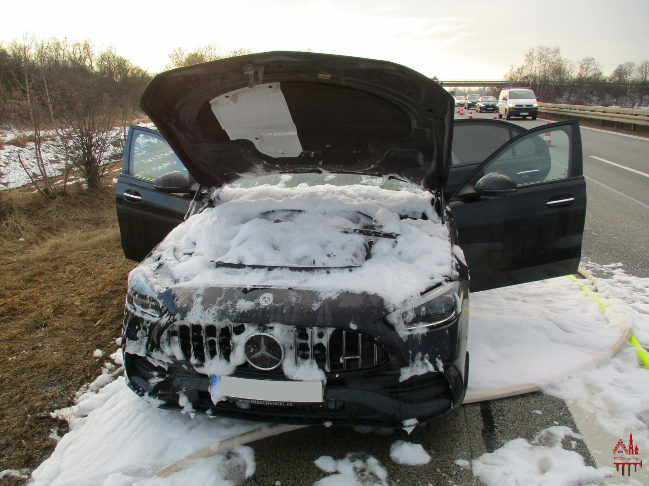 Die Feuerwehr Dingolfing wurde zu einem PKW-Brand auf die A92 zwischen den Anschlussstellen Dingolfing-Ost und Pilsting-Großköllnbach in Fahrtrichtung Deggendorf alarmiert. Vor Ort wurde ein rauchender PKW am Standstreifen vorgefunden. Es wurde eine Verkehrsabsicherung erstellt und die rechte Fahrspur für die Löscharbeiten gesperrt. Ein Trupp, geschützt mit schwerem Atemschutz, löschte mit einem C-Rohr den Entstehungsbrand im Motorraum ab und kontrollierte Diesen anschließend mit der Wärmebildkamera. Abschließend wurde der Motorraum mit Schaum abgedeckt, um ein Wiederaufflammen zu verhindern. Nach Abschluss der Arbeiten wurde die Einsatzstelle der Autobahnpolizei bzw. dem Abschleppunternehmen übergeben.