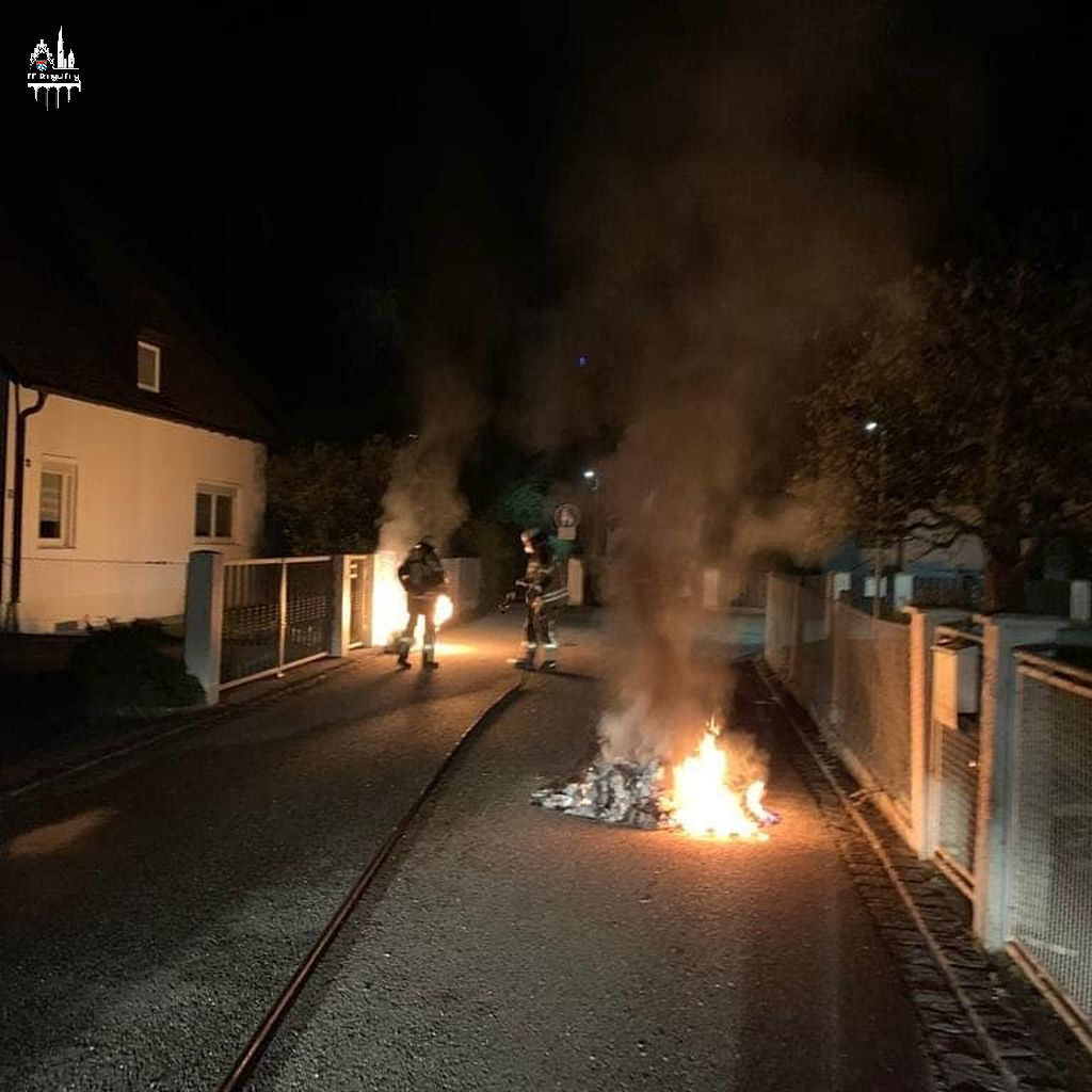 Vor Ort brannten mehrere größere Papier- und Mülltonnen, welche durch einen Trupp unter umluftunabhängigem Atemschutz und einem ...