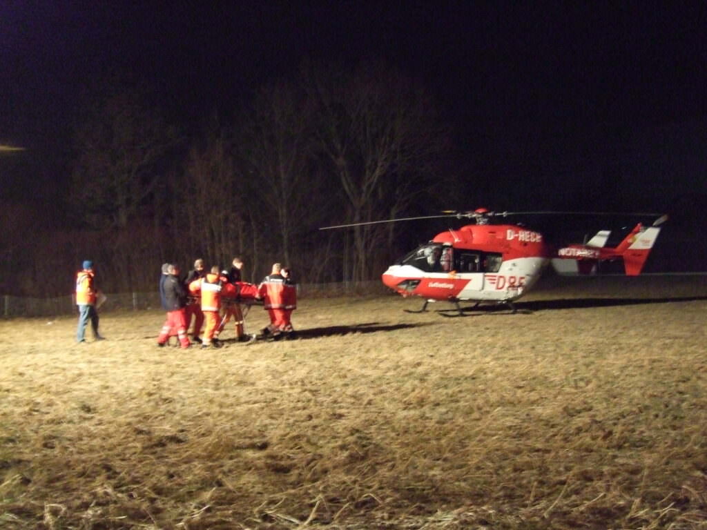 Anforderung zur Unterstützung bei der Landeplatzausleuchtung für Rettungshubschrauber zum Patiententransport durch Ätzverletzung ...